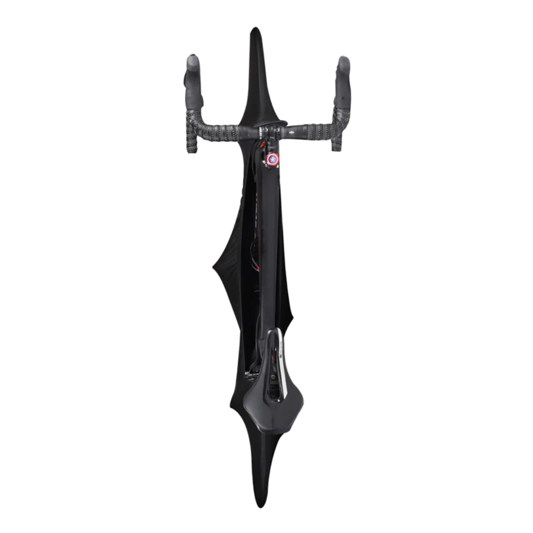 ¿Guardas tu bicicleta en un porta bicicletas? Deja la parte superior del cuadro sin cubrir, por lo que puedes utilizarlo con tu montaje en el porta bicicletas. Además, el tejido elástico permite apuntalar la bicicleta en un caballete de forma rápida y sin problemas.